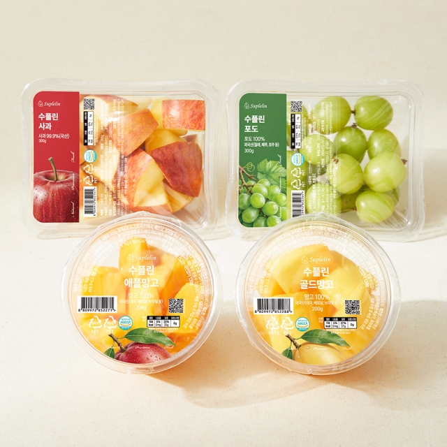 바로먹는 컷팅 과일 4종 세트 1kg (애플망고,골드망고 200g / 청포도,사과 300g)